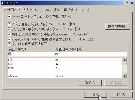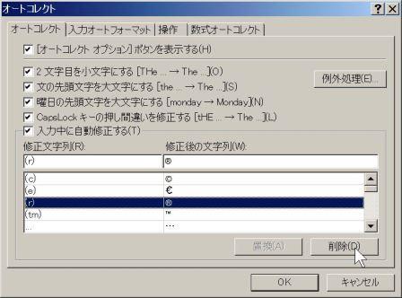 <他の(c)→©、(e)→€も 無効にしたい場合は同様に>