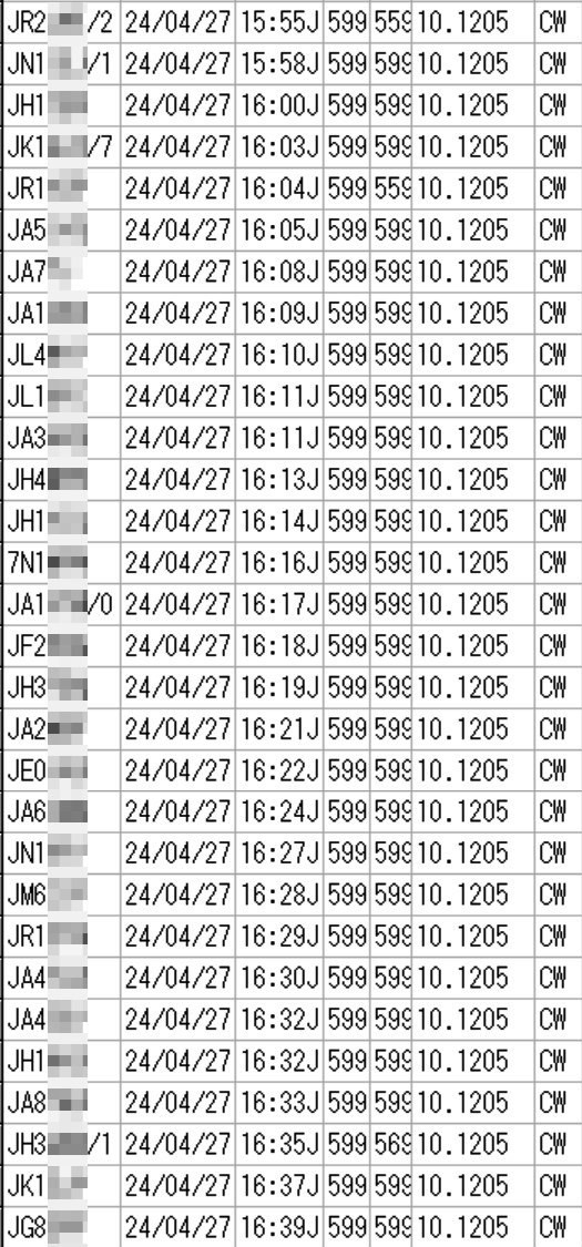で、前回の記事の後の交信実績ですが、4月19日から5月9日までちょこちょこ移動して短時間運用して(主にお買い物待ち時間)こんなふうになっていました。